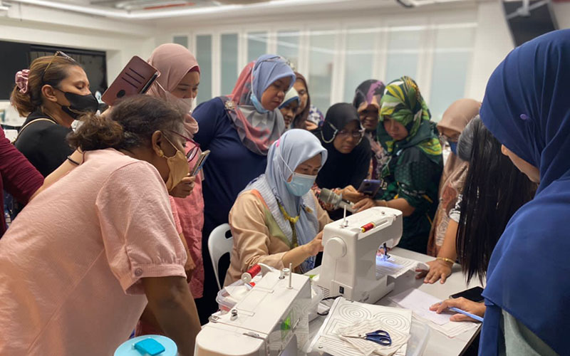 Since 2021, PPB has been collaborating with Persatuan Seni Jahitan Kreatif Malaysia (PSJKM) and has sponsored 210 participants from the B40 community for a 6-day intensive hands-on training course on creative sewing with natural dyes, eco-printing or repurposing techniques including plastic-to-textile conversion. After completion of their training, participants were each given a sewing machine and 6 months of continued mentorship. The participants were given the opportunity to sell their handmade products at PSJKM’s Facebook Live sessions and various bazaars. They are also encouraged to continue with the advanced sewing courses also sponsored by PPB, to upskill their sewing techniques and create more varieties for their product catalogues.  Many who had started without any source of income, are now able to earn an income by selling their sewing products after completing the course.